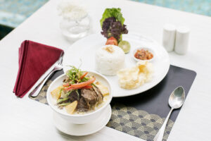 “Setiap Jumat malam, ada BBQ Nite. Ini ciri khas kami, sudah 1 tahun. Special khas minuman, ada hot cappucino tertulis nama hotel di sajian cangkir. Ini ikonik,” kata Alfa.