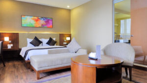 Berbeda dengan hotel pada umumnya, suites adalah tipe condotel atau service apartment. Setiap kamar punya 2-3 kamar tidur. Dilengkapi ruang tamu, dapur, dan ruang makan setiap kamar suites.