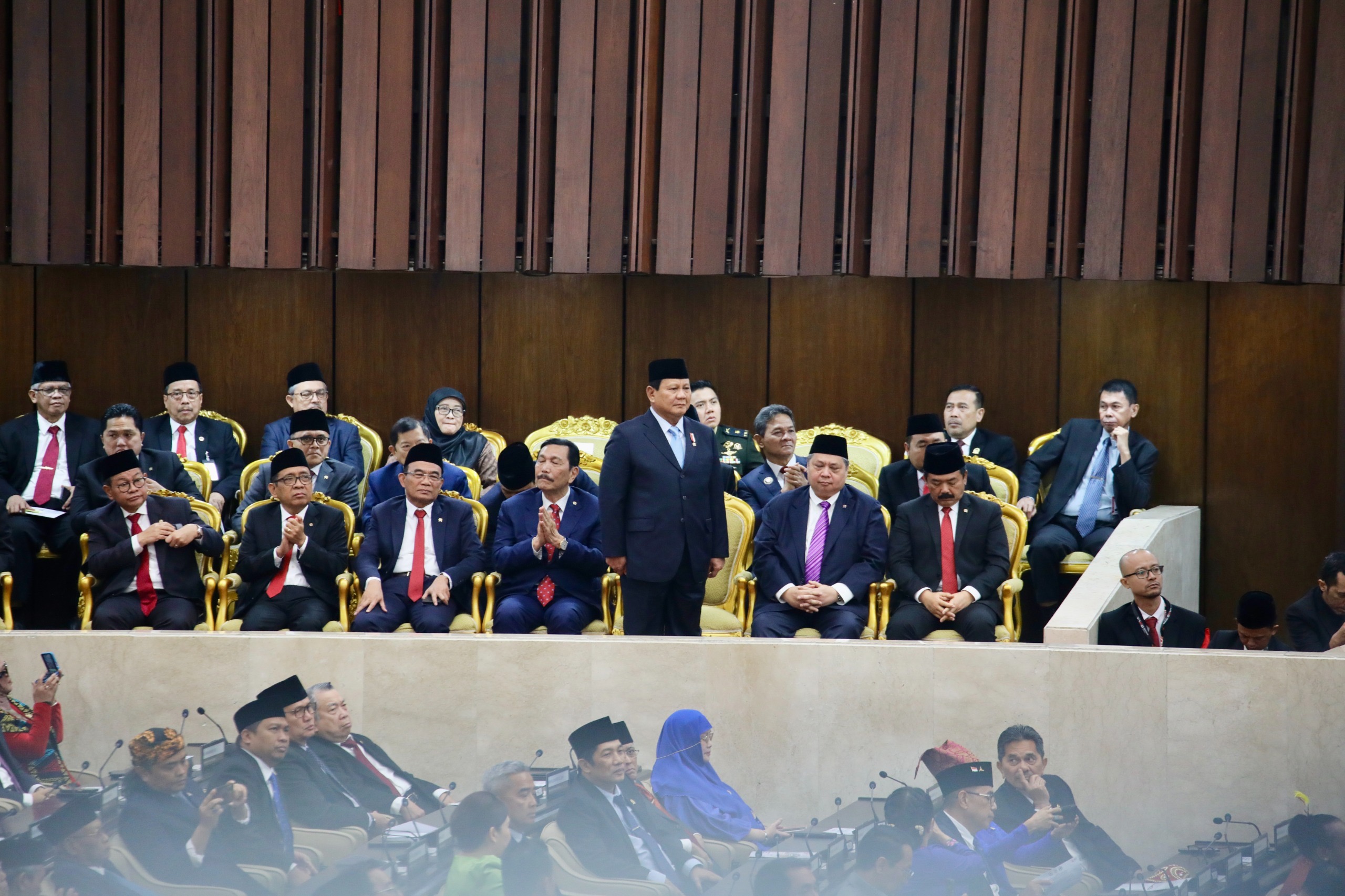 Jakarta – Menteri Pertahanan sekaligus presiden RI terpilih Prabowo Subianto menghadiri sidang tahunan MPR/DPR yang digelar di Kompleks Parlemen, Jakarta, Jumat (16/8).